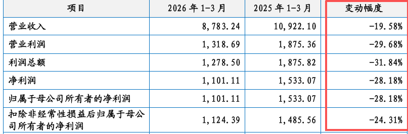 然而,根据招股书中披露的2026年一季度业绩来看,公司的各项财务指标均在下降。其中,营收为0.88亿元,同比下降19.58%;净利润为0.11亿元,同比下降28.18%。
