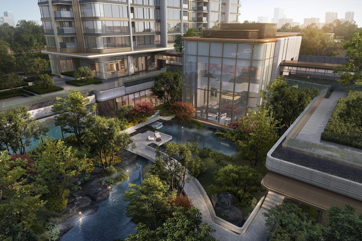 将约4700㎡的私享会所体系与下沉峡谷景观,打造为整个社区的生活主场。从通高约15米凌雲书阁的精神领地,到近3000㎡峡谷秘境的沉浸体验,再到圈层社交场域,空间被编织成一个彼此联通的“全景生活网络”。