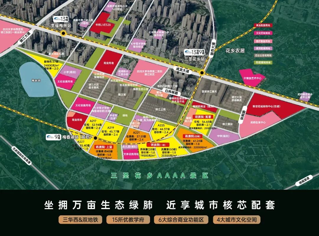 教育方面,成都三幼、成师附小驸马校区、七中育才梅香湖校区等品质学校齐聚,以及配套高中的规划,涵盖从幼儿园到高中的多学段教育资源;(仅供参考,不作为入学依据,具体以当年教育部门划片为准)