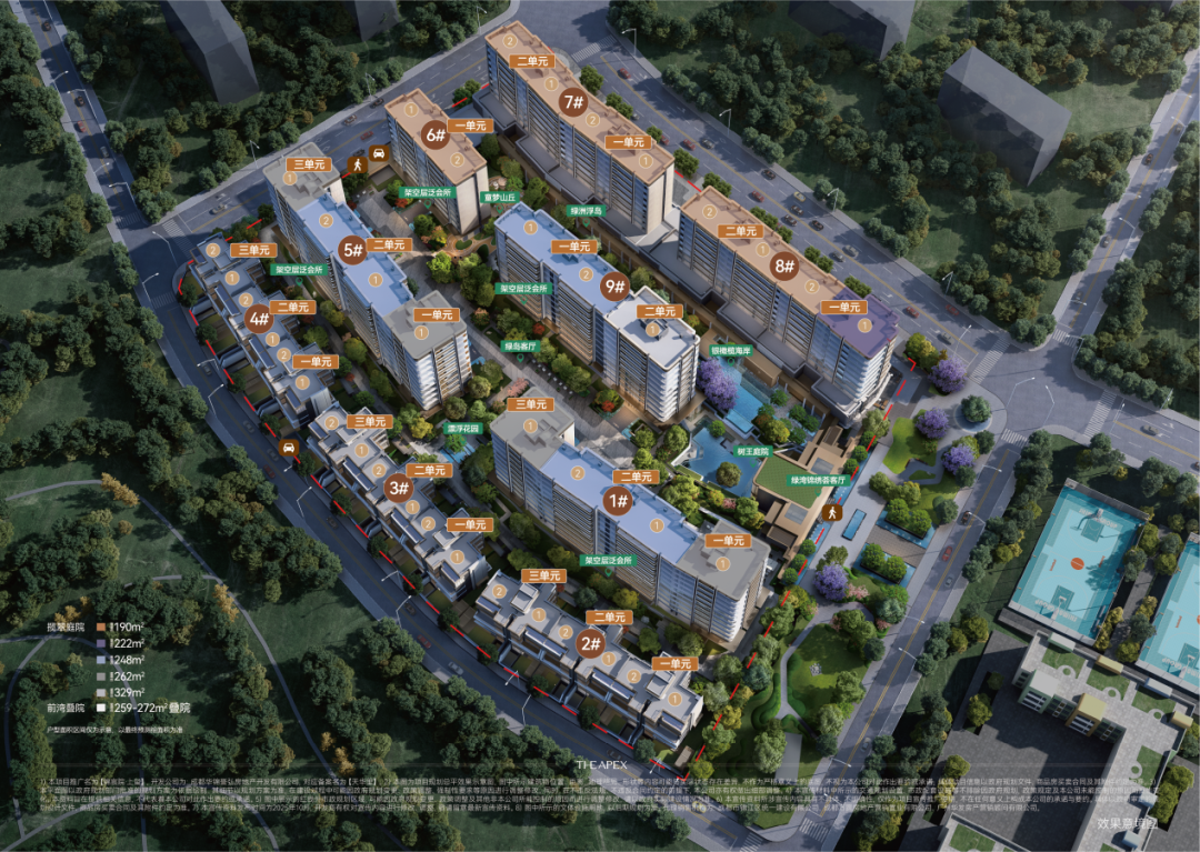 于是,锦宸院·上玺规划了建面约190-329㎡的揽翠庭院和建面约259-272㎡的前湾叠院。无论洋房还是叠院,户户有院。