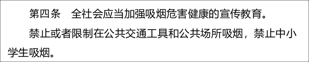 新修订的《四川省烟草专卖条例》第四条显示,全社会应当加强吸烟危害健康的宣传教育。禁止或者限制在公共交通工具和公共场所吸烟,禁止中小学生吸烟。