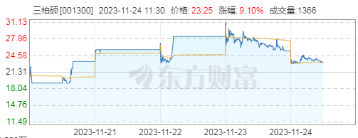 11月24日,三柏硕延续昨日跌势,截至上午收盘报价23.25元/股,跌幅8.89%。