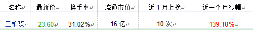 11月23日,三柏硕跌停,因日振幅值达到15%、日跌幅偏离值达到7%、日换手率达到20%,登上龙虎榜。全天成交量4622.55万股,成交金额128778.37万元。