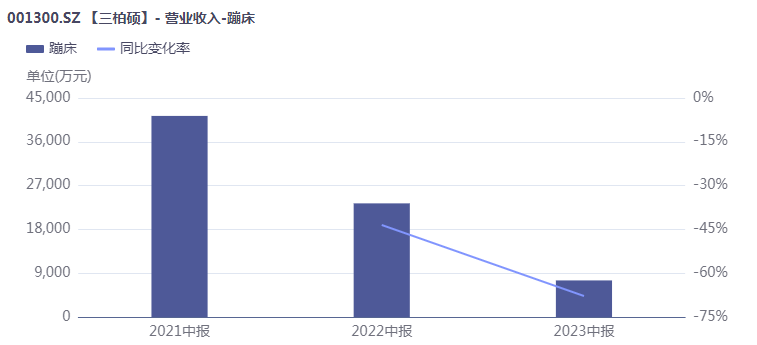 从产品结构上看来,三柏硕的业绩骤降与蹦床产业发展空间触及天花板息息相关。