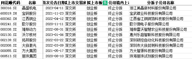 海信视像、晶盛机电、宝钢股份 3 家公司同日宣布终止分拆子公司上市,创下年内单日新高。