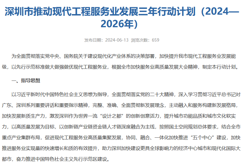 消息面上,《深圳市推动现代工程服务业发展三年行动计划(2024-2026年)》于近日印发。其中提出产业集聚、产业动能、产业生态等发展目标,计划全面提升现代工程服务业发展能级。