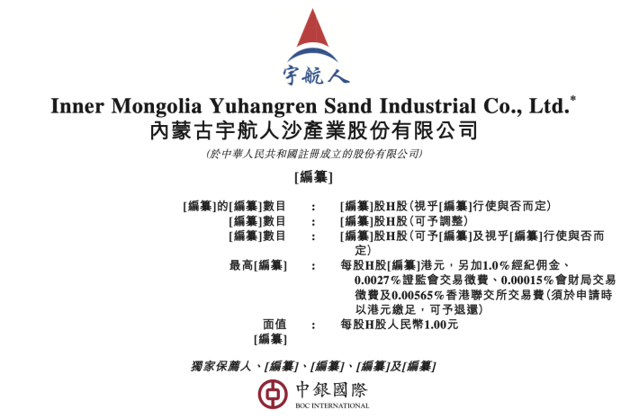 据港交所披露,内蒙古宇航人沙产业股份有限公司在港交所提交上市申请。