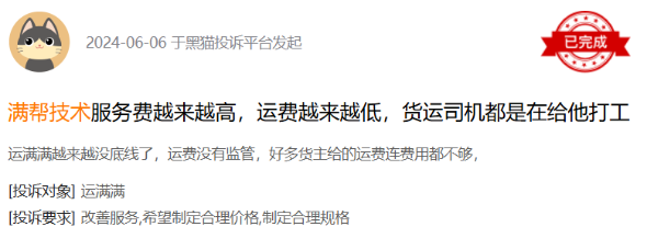 交易服务主要是满帮通过技术匹配促成交易并从中抽佣。虽然司机通过满帮获取了订单,但平台抽取的佣金和服务费用却压缩了司机的利润空间。满帮高比例抽成的操作早已受市场诟病。对此,也有司机表达了对平台高比例抽成的不满,称“满帮技术服务费越来越高,运费越来越低,货运司机都是在给他打工”。事实上,满帮于2023年7月曾将平台收取的技术服务费上限降低10%,但就目前反馈而言,满帮的策略显然未能使广大司机满意。
