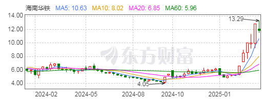 公开资料显示,海南华铁前身是华铁应急,由自然人胡锡茂、胡丹锋共同出资于2008年成立,2015年登陆A股市场,在上交所主板挂牌上市。