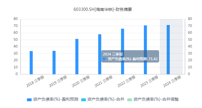 截至2024年三季度末,海南华铁货币资金为3.14亿元;有息负债总额超120亿元,资产负债率为71.42%。