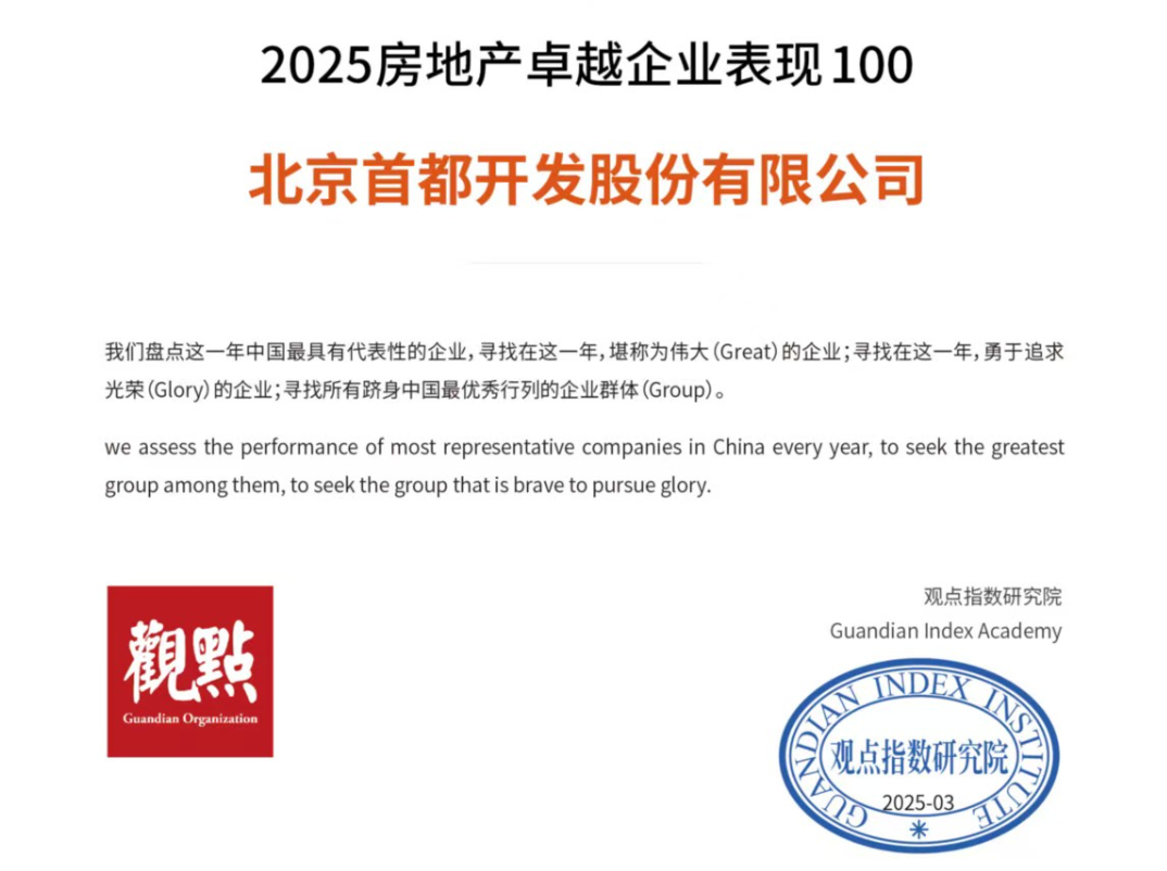这份殊荣,既是对首开股份过往璀璨的加冕,也是对未来征途的鼓励。