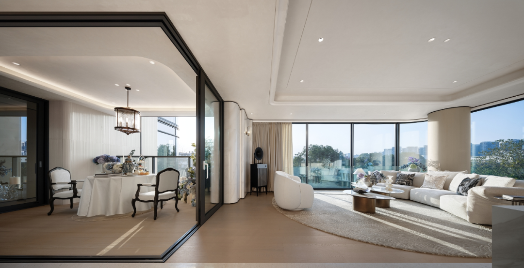 更关键的是,项目200㎡以上户型客餐厅仅保留单根圆形承重柱,消除传统剪力墙对视线的割裂,可让LDK一体化空间实现最大延展。