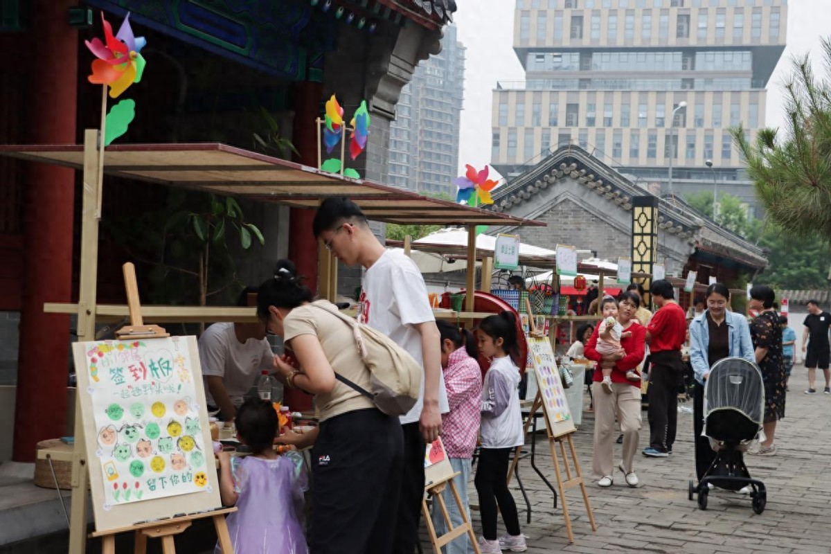 当艾草清香与孩童嬉笑一同漫过百年古寺,当汉砖纹样在宣纸上苏醒又被小心珍藏进衣袋——这个端午,寺锦·回龙观城市会客厅化身为一座流动的文明乐园。5月31日,寺锦“文明有约,爱‘新’来聚”端午特别活动中,两千多位居民以巧手共拓文化,以温情同享市集烟火,为社区注入融融暖意。