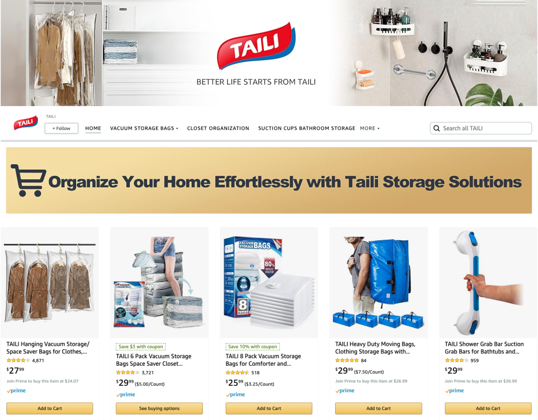 真空收纳袋和垂直墙壁置物产品是其主要产品。2024年,太力科技的真空收纳袋收入占比36.37%,垂直墙壁置物产品收入占比35.87%,两大产品收入占比合计72.24%。