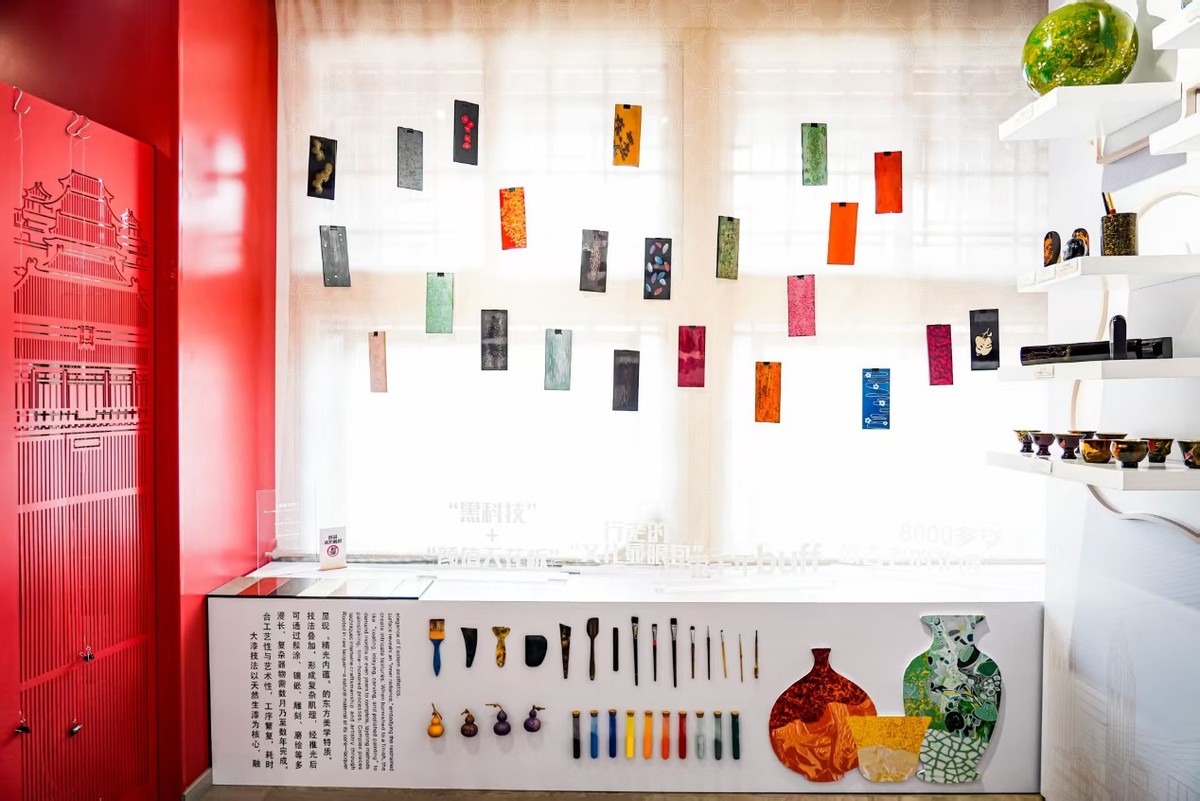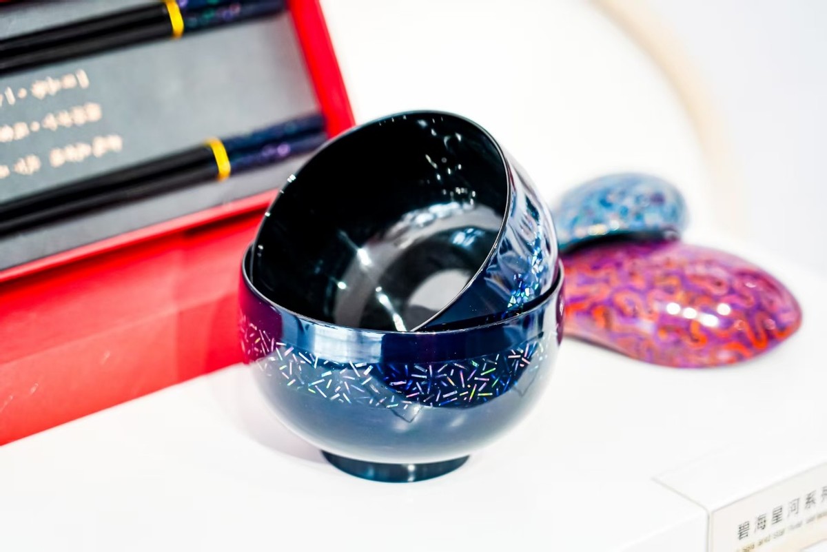 此次展览突出三个特点。一是既聚焦又多样:聚焦“大漆”这一非遗品类,深度推广大漆文化,在作品中体现“万物可漆”的特性,涵盖生活美学、抽象艺术、时尚潮玩等不同领域;二是传承与创新:犀皮、螺钿、针刻、蛋壳镶嵌等传统工艺通过滑雪板、潮玩、日用品等大众喜爱的作品形式呈现,让非遗有了朝气和烟火气;三是互助与守望:残障人士制作漆艺作品,艺术家、文化博主、潮玩设计师协助提供创作思路,这里没有帮助者和受助者之分,大家都在共同的艺术创作中获取力量。