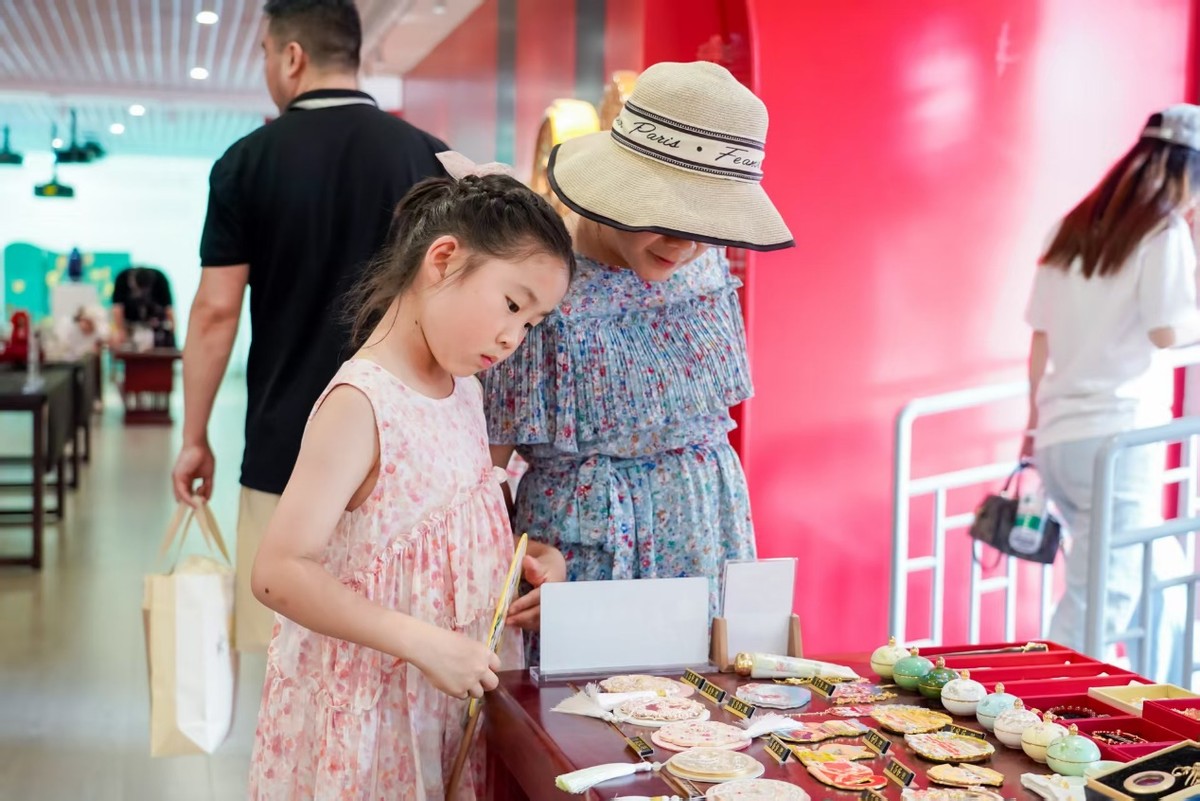 除了精美的艺术展览外,主办方还设置了丰富多样的体验活动供观众体验。观众可以参观故宫主题大漆产品,观看屏风螺钿制作,体验大漆葫芦、漂漆扇制作与抽盲盒等,亲身感受传统工艺的魅力与创意文化的趣味。