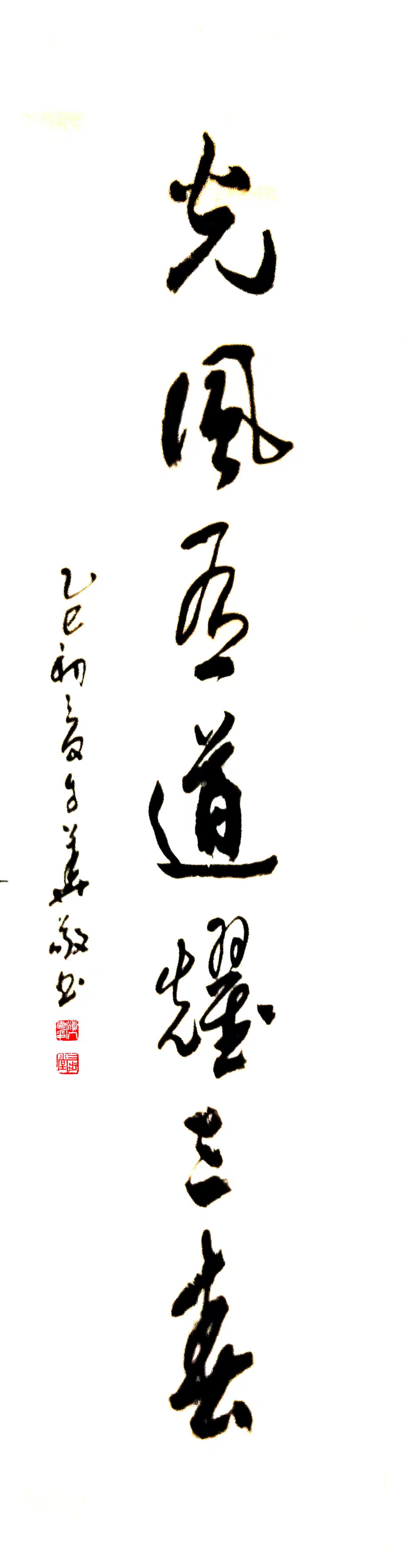 作为文人书家,先生从实践与理论双管齐下,悉心体悟历代篆、草艺术的丰厚文化内涵。他以扎实的笔墨功力强化线条的主体感与如音乐旋律般的节奏感,并精妙捕捉创作中的偶然效果。通过行笔的徐疾、提按、绞转、顿挫,结合墨色的浓淡枯湿,大大丰富了作品的视觉层次;其洒脱空灵的笔墨与充满张力的构成,创造出自然奥奇的艺术精神,契合着强烈的时代审美取向。