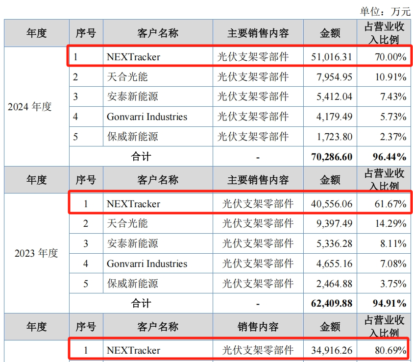 且鉴于光伏跟踪支架行业的现有市场格局和公司现有产品结构,酉立智能在未来一段时间内仍无法摆脱客户集中度较高和单一大客户依赖的情况。这可能会NEXTracker业务或订单有变的情形下,对酉立智能的经营业绩产生重大不利影响。