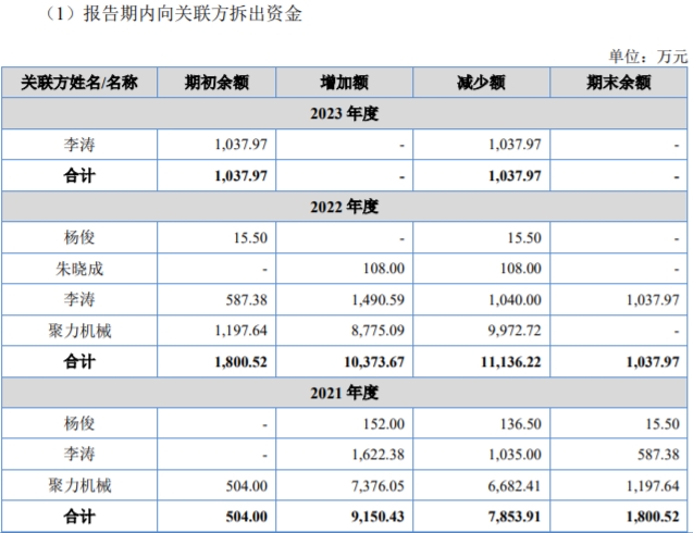 尤其是在2022年,酉立智能与控股股东聚力机械之间存在较为频繁的资金拆借。此外,2022年,公司与控股股东聚力机械发生过一次“转贷”的情况,涉及金额为1000万元。