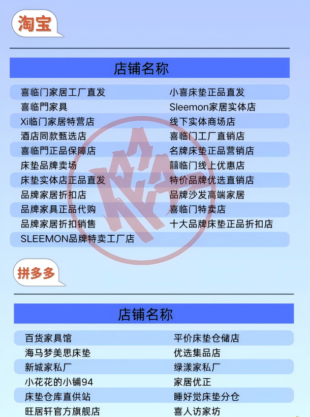 喜临门:发布107家山寨店铺黑名单