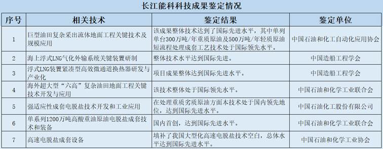 同时,长江能科多项科技成果获得中国石油和化学工业联合会科技进步一等奖、二等奖,中国造船工程学会科技进步一等奖以及国家重点新产品等奖项。