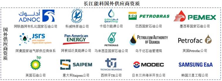 目前,长江能科获得了阿联酋阿布扎比国家石油公司、科威特原油公司、卡塔尔能源公司、巴西国家石油公司、墨西哥国家石油公司、意大利油服集团塞班公司(Saipem)和英国派特法石油工程公司(Petrofac)等合格供应商资格,同时取得了ASME等国际资质认证,不断拓展海外业务。