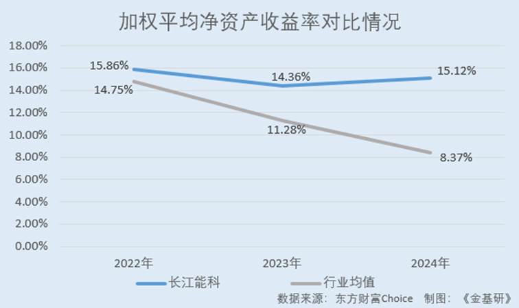 2022-2024年,长江能科的ROE分别为15.86%、14.36%、15.12%。同期,长江能科招股书中五家同行业可比公司的ROE均值分别为14.75%、11.28%、8.37%。