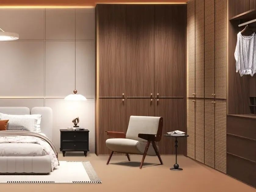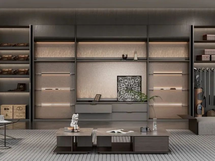 设计特点:深灰色木纹与细腻卡其色布纹碰撞,深浅相宜自然过渡,极简线条+EB工艺+秩序美学,演绎质感极简生活。