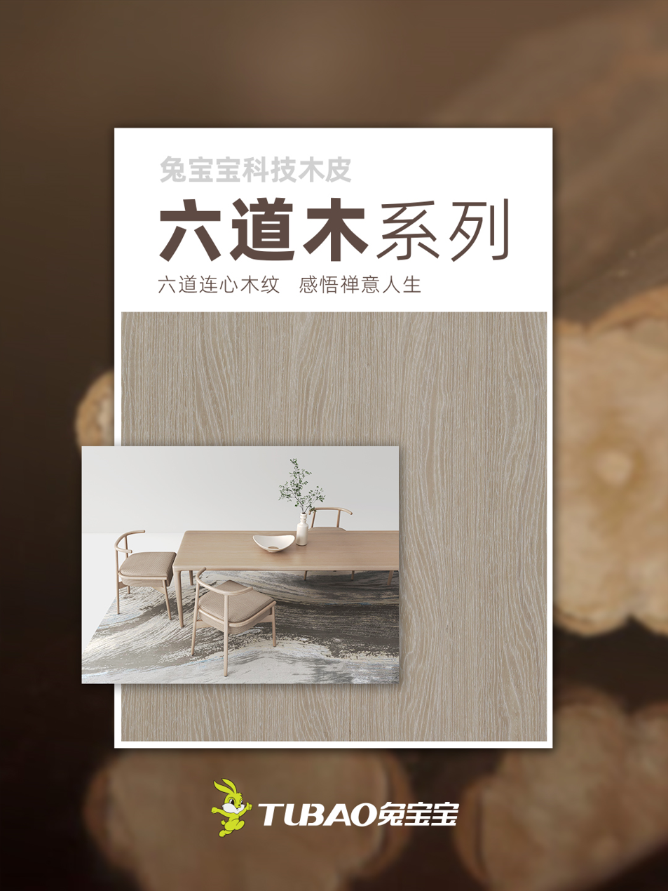像我们兔宝宝的科技木产品,保留木材的基本木质结构,继承了木材隔热、绝缘、调温等天然属性,还能定制难燃抑烟、防霉抗菌等功能属性。既能满足人们亲近自然的天性,又能适应当前社会不同场景的特别需要,实现空间与自然的和谐共生。