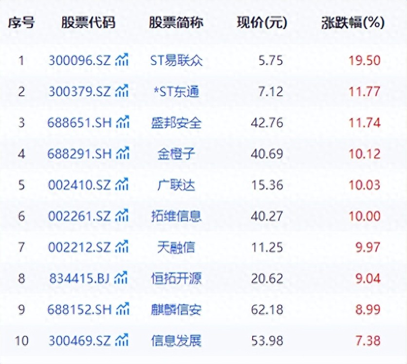 今日,软件开发板块涨势喜人。截至收盘,广联达(002410.SZ)、拓维信息(002261.SZ)、天融信(002212.SZ)等多股涨停,ST易联众(300096.SZ)、*ST东通(300379.SZ)、盛邦安全(688651.SH)涨超10%,指南针(300803.SZ)、经纬恒润(688326.SH)、麒麟信安(688152.SH)纷纷跟涨。