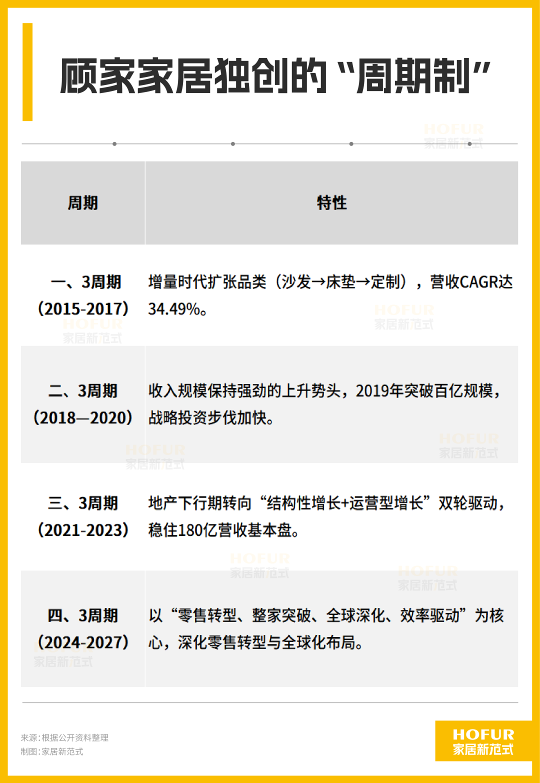2015年,顾家家居形成以每三年为一个战略周期滚动修订规划与目标的机制。10年后的今天,面对当前家居行业复杂的新产业周期,顾家家居以“三性”素养、四大矩阵和三大想象力,成为家居行业与产业周期“掰掰手腕”的代表性选手。正所谓“你有你的法子,我有我的路子”,任何一家企业都无法回避新产业周期,唯有吸收过往的经验,树立信心与勇气,积极拥抱变革,才有可能蹚出一条新路子。祝好!