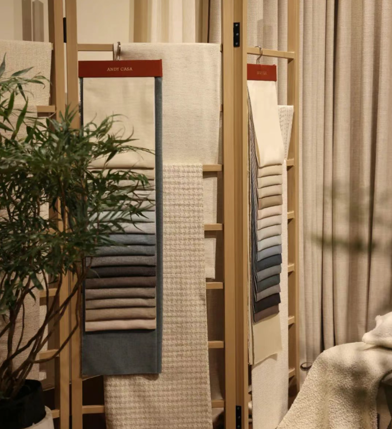 其次,自然主义成为全球共通语言。无论是东方的禅意,还是北欧的简约,对自然材质(棉、麻、丝)、柔和色彩和丰富肌理的追求前所未有地统一。其中,众望布艺以自然质感的材质打造特色展台,内设互动区供观众触摸布料、体验沙发软装实景,成为展会上的热门打卡点。中国供应链凭借对天然材质的精湛处理工艺(如高质量的棉麻混纺、丝绸创新应用),成为全球品牌实现设计理念的首选生产基地和创新伙伴。
