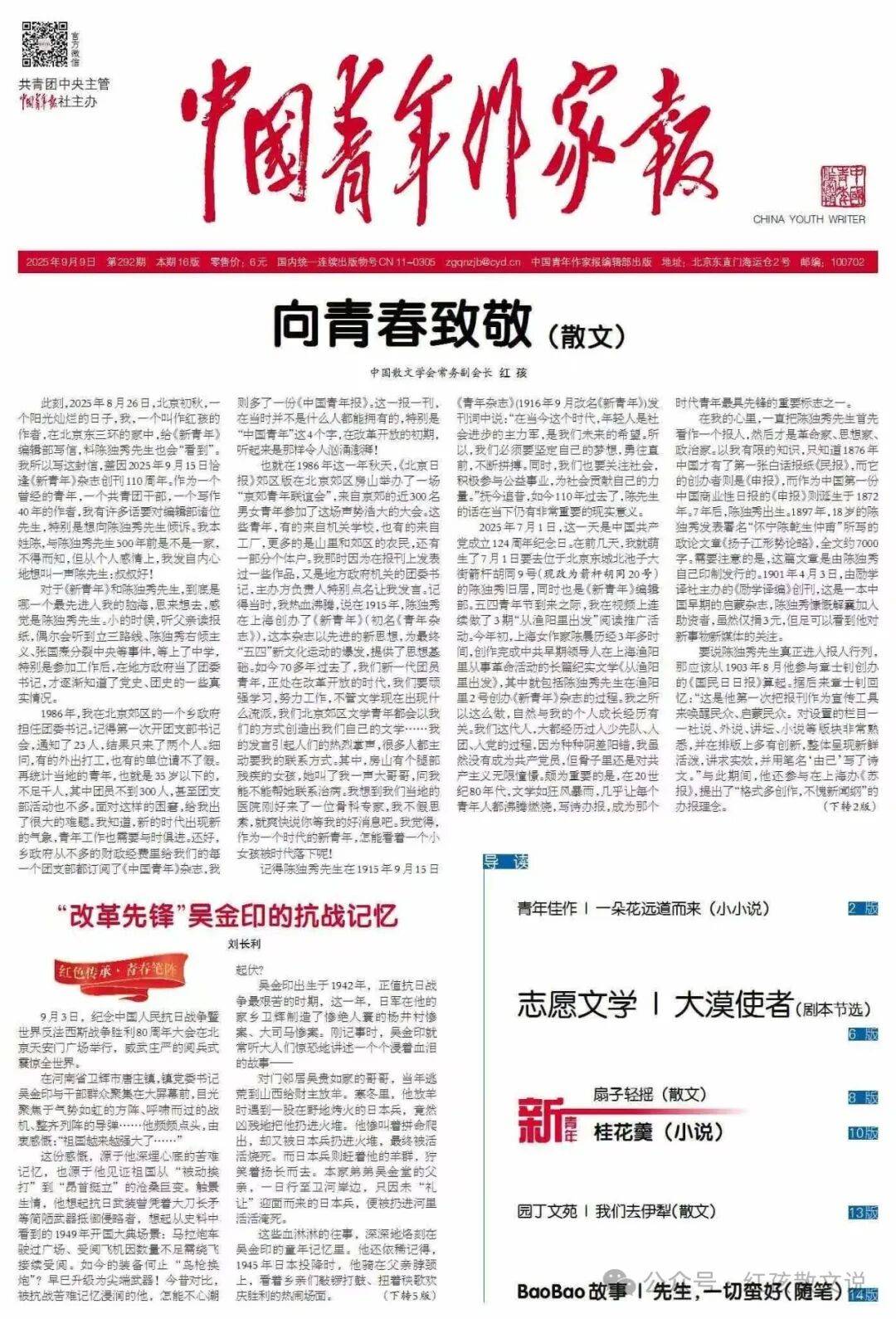 我所以写这封信,盖因2025年9月15日恰逢《新青年》杂志创刊110周年。作为一个曾经的青年,一个共青团干部,一个写作四十年的作者,我有许多话要对编辑部诸位先生,特别是想向陈独秀先生倾诉。我本姓陈,与陈独秀先生500年前是不是一家,不得而知,但从个人感情上,我发自内心地想叫一声陈先生:叔叔好!