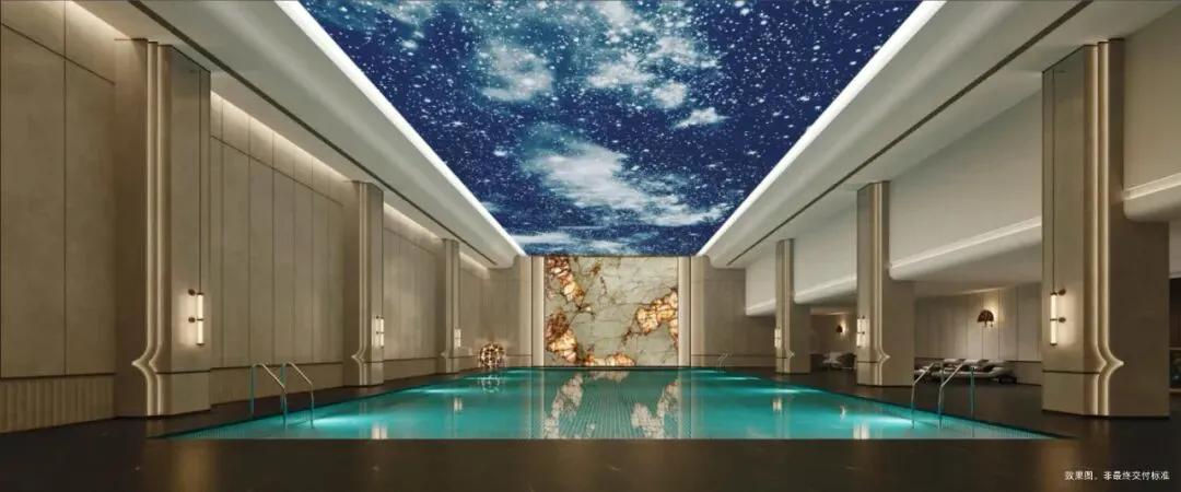 博雅会馆以“星级酒店艺术美学”为基底,聚焦高净值圈层需求,规划恒温泳池、健身功能等多元场域;恒温泳池以雅致材质配光影设计,呼应东方艺境。这里既是休闲运动空间,更是同频人群交流、资源互享的高端平台,让社交与生活在艺术中融合。