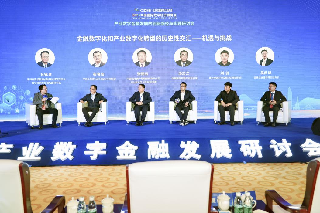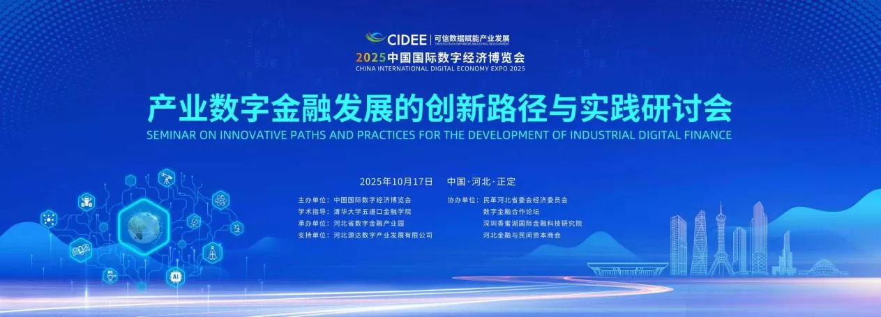 2025年10月17日,第六届中国国际数字经济博览会正式开幕。17日下午,作为本届数博会中唯一聚焦数字金融领域的“产业数字金融发展的创新路径与实践”研讨会在石家庄会展中心成功举办。大会由中国国际数字经济博览会组委会主办,河北省数字金融产业园承办,清华大学五道口金融学院任学术指导单位,民革河北省委会经济委员会、数字金融合作论坛、深圳香蜜湖国际金融科技研究院参与协办。