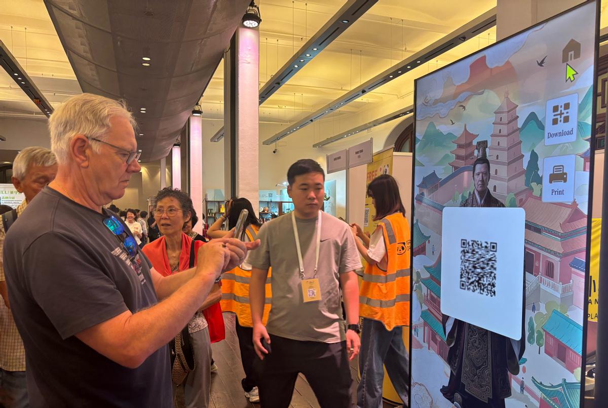 此次重点推出的四项数字文旅体验项目成为活动现场最受追捧的亮点。“数游长安 穿越千年”虚拟漫游体验区前,澳洲青年艾米丽佩戴VR设备后连连赞叹:“俯瞰兵马俑的感觉非常震撼,完全忘了自己此刻是在悉尼!”,360度沉浸式视角让她在盛唐宫廷与现代都市间自由穿梭。“数语长安 旅问趣答”文旅智能推荐机器人旁,当地华人李先生正在咨询家庭出游路线,“语音提问马上就能得到回应,景点推荐、美食攻略都很实用,下次去西安就照着这个规划”,AI的高效定制服务让跨境旅游信息获取变得简单。“数动长安 身入史画”动态历史交互体验区内,动作捕捉技术映出孩子们模仿霓裳羽衣舞的生动姿态,历史因此更显鲜活。此外,人们纷纷在“数绘长安 唐风幻影”真人换装互动体验区上传照片,AI生成的汉服写真搭配中式宫殿、市井街巷等背景,成为现场最热门的“打卡方式”,传统服饰文化在互动中自然传播。