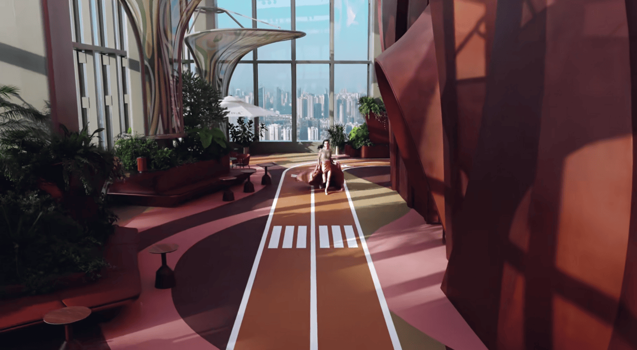 l 66层海拔722米天际健身会所,白天是全景运动空间,夜晚则转换为云端社交场。