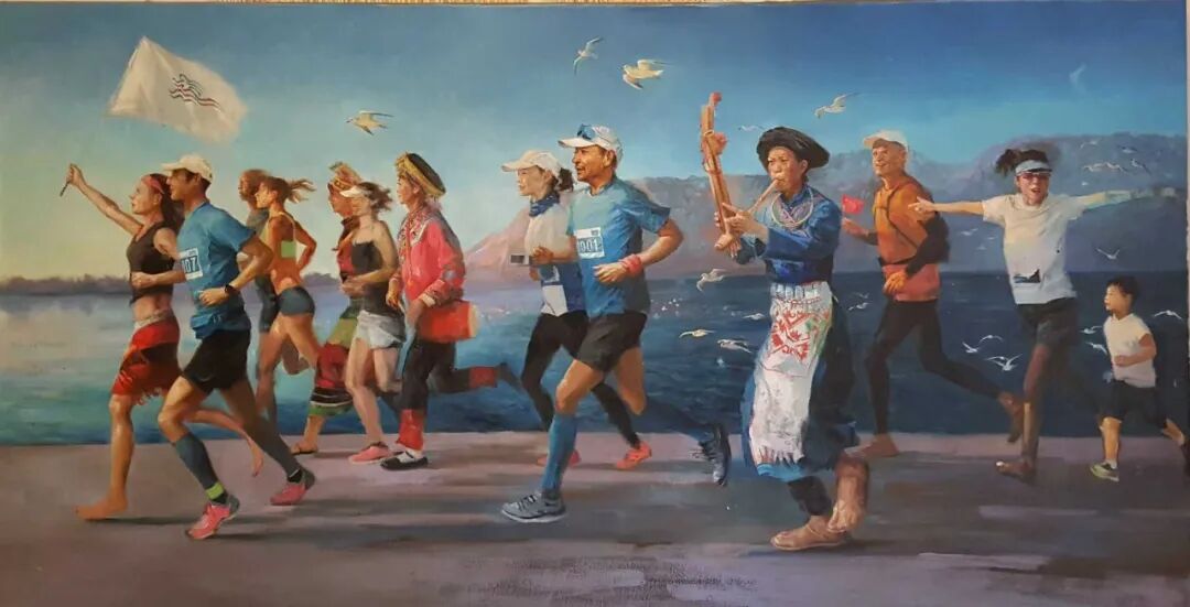 随后的几年里,陈老师的生活方式发生了改变,每天清晨陈老师以奔跑的方式开启创作的热身,为了追寻马拉松运动的源头,他奔赴雅典马拉松小镇,去观摩马拉松博物馆里那些改变历史的步伐……在构思创作《中国马拉松》长卷前,他投身到北京中国体育博物馆里查看数万张中国马拉松赛事的珍贵影像……他的画笔仿佛被赋予了生命,他笔下的人物充满张力,无论是摆臂的角度、肌肉的线条,还是冲刺时的面部微表情,都精准地捕捉到了奔跑的灵魂。