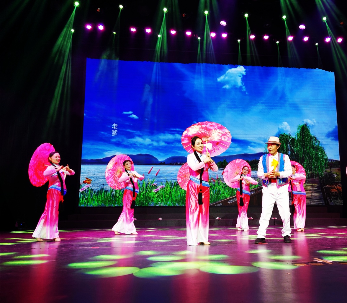 此外,省卫生健康委员会的舞蹈《梨花颂》舞姿优美、服饰华丽,恰似梨花吐芳;省文化和旅游厅的花灯《说唱新昆明》以轻快形式生动呈现春城新貌;云岭军休艺术二团的舞蹈《母亲是中华》深情表达对祖国的热爱;中国人民银行云南省分行的合唱《天路》歌声悠扬、气势磅礴,引人遐思。五华区军体中心的歌舞乐《阿佤人民唱新歌》将现场气氛推向高潮,演员们身着多彩民族服饰,以热情歌舞歌颂党和祖国,传递出民族团结、生活美满的喜悦。最后,全场齐唱《在灿烂阳光下》,共同展望美好明天。