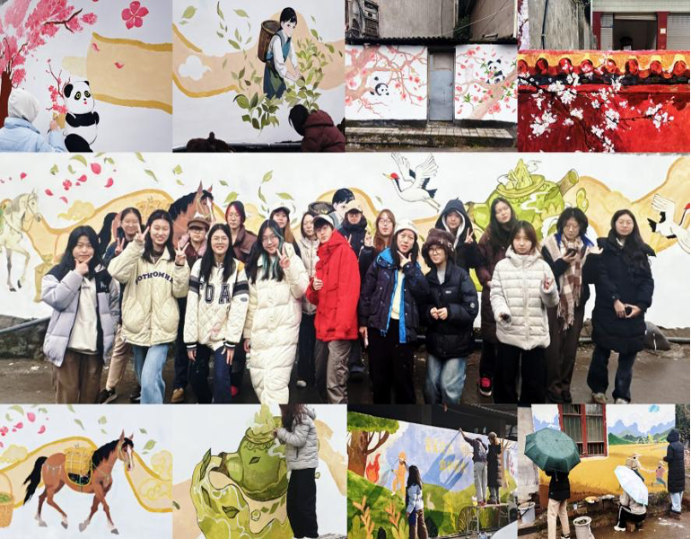 为弘扬中华民族尊老敬老的传统美德,助推乡村文化振兴与社区暖心服务,1月15日至19日,四川农业大学艺术与传媒学院“艺美青年行”社会实践团队深入雅安市青江村与西大街社区,开展以“墙绘传承茶马文化,爱心温暖社区老人”为主题的新春公益实践活动。同学们以专业赋能乡村,以爱心温暖社群,在寒冬中书写了一幅充满温情与文化气息的青春画卷。