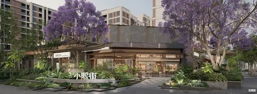 与许多项目竭力围合、与城市保持距离的做法不同,熙园甲第选择了更开放、更积极的姿态。它主动退让红线,打造约400米的连续城市界面。这不仅是视觉上的展示,更是功能的嵌入。