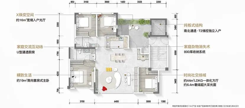 LDKG一体化方厅: 项目彻底告别竖厅,即便最小户型也实现了约6米面宽、约40㎡的LDKG一体化空间。最大户型更打造出约48㎡的全景端厅。这种以往只在主城大平层中出现的尺度与通透感,带来了家庭社交、亲子互动与宴会招待的质变体验。