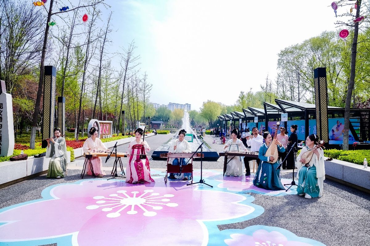 推介大会期间,“跟读《诗经》免费游鹤壁”特色活动持续开展,游客通过背诵或跟读指定诗经篇目,即可免费体验全域文旅项目,让千年诗韵从文字走向生活。从桃园公园的《诗潮樱舞》民乐舞蹈、“诗画鹤城”绘画展演,到淇河书屋的春日诗会,鹤壁让赏樱之旅成为一场穿越千年的文化邂逅,持续擦亮“诗经故里・美丽鹤壁”的城市文化名片。