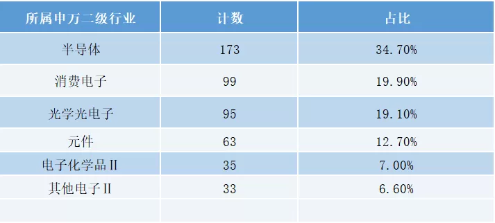 截至2026年4月8日,申万电子行业A股上市公司共498家,数量位居全市场第三,仅次于机械设备与医药生物。