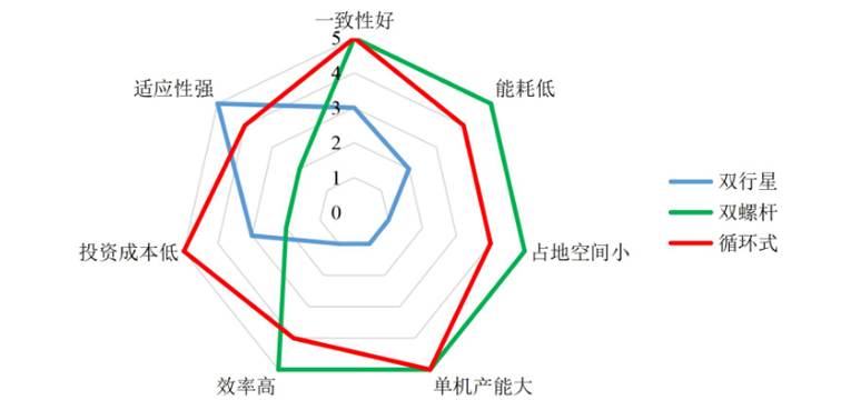 双行星搅拌技术、双螺杆制浆技术、循环式高效制浆技术这三种制浆设备的关键指标性能对比如下: