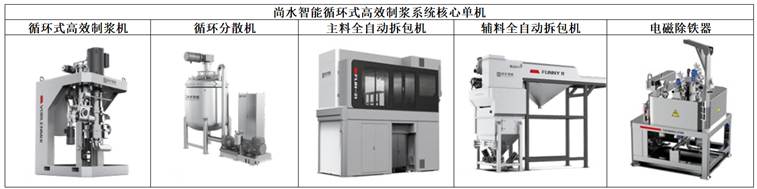 2016年,尚水智能在工艺路径与产品结构设计上实现了系统性创新,全球首创“循环式高效制浆系统”,开创全新制浆工艺路线,从原理上解决了预混合效果差、效率低、能耗高、一致性差、占地空间大等行业痛点。