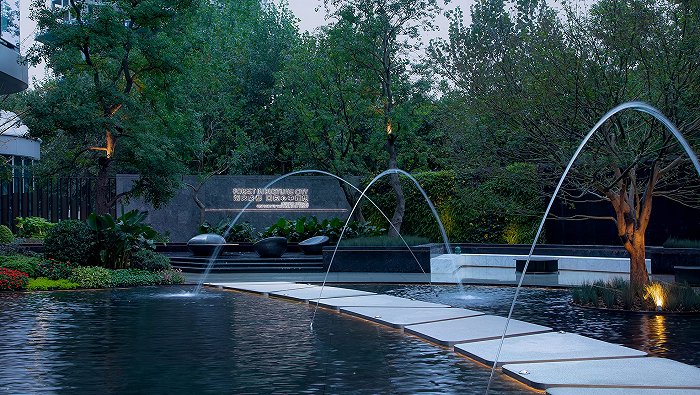 除了强调人与建筑的关系外,新希望同样关注生活本身的美好,在园林打造中,以瑰丽酒店为设计蓝本,旨在打造融汇酒店气质与文化沉淀的精奢华宅,以主题“流光钻莹·国际风尚”贯穿景观结构,“引-界-见-合-赏”五重景观展示,打造“有里有面,有庭有院”的生之所向场景。