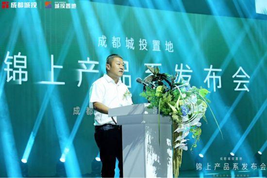 (成都城投置地集团党委副书记、副董事长、总经理廖靖致辞,城投置地供图)随后,成都城投置地集团常务副总经理陈涛登台并进行《锦上产品系TED宣讲》,从“客户到用户的思考、产品到场景的丰盈、功能到尊享的升级”三大革新思维及“建筑审美创新、景观体验进阶、空间场景交互、艺术创造精神、智慧服务升级”5大创新主张,诠释着城投置地同频成都高端人居的新产品主义理念。