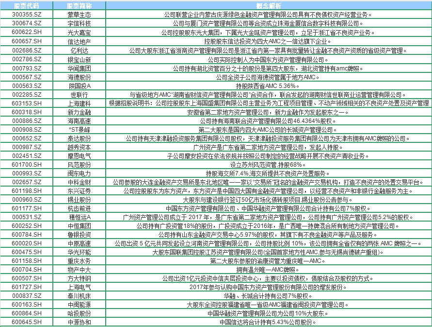 同样值得关注的是,在览富财经梳理的36家AMC概念股名单中,蒙草生态、宇信科技、世联行、华闻集团、新力金融、海南高速、泰达股份、摩恩股份、风范股份、闵东电力等十多家公司均属于亲自“下水摸鱼”派。