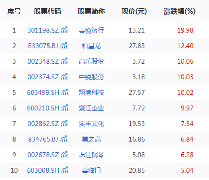 11月7日早盘,轻工制造板块异动拉升。截至发稿,喜悦智行、紫江企业、翔港科技等多股涨停,实丰文化、美之高、珠江钢琴等涨超6%。